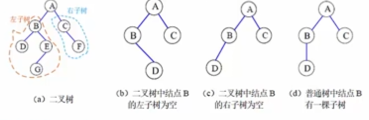 二叉树是 n 个结点的有 限集合,它或者是空树,或者是由一个根结点及 两颗互不相交的且分别称为左右子树的二叉树组成。